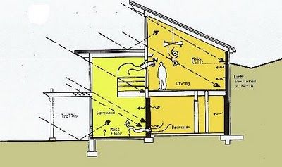 earth sheltered home design. The berm design allows natural protection from chilling northern weather (and providing excellent insulation) while utilizing the south side of the building's sunlight for passive solar lighting and heating.